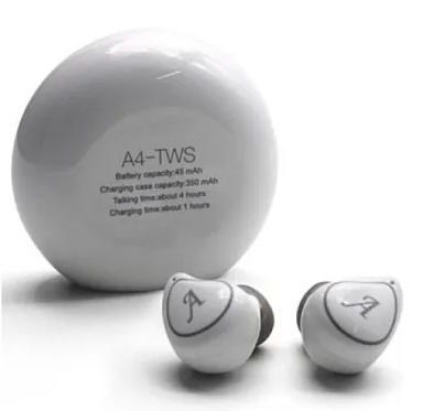 Casti Wireless A4-TWS cu dock de incarcare si design compact alb