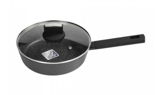 Cratita Zilan Negru cu invelis din marmura, 5 straturi, 24 cm si maner fin la atingere, 2.4L