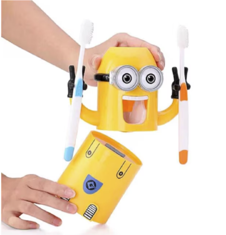 Dozator Minions pasta de dinti, cu suport integrat pentru periute