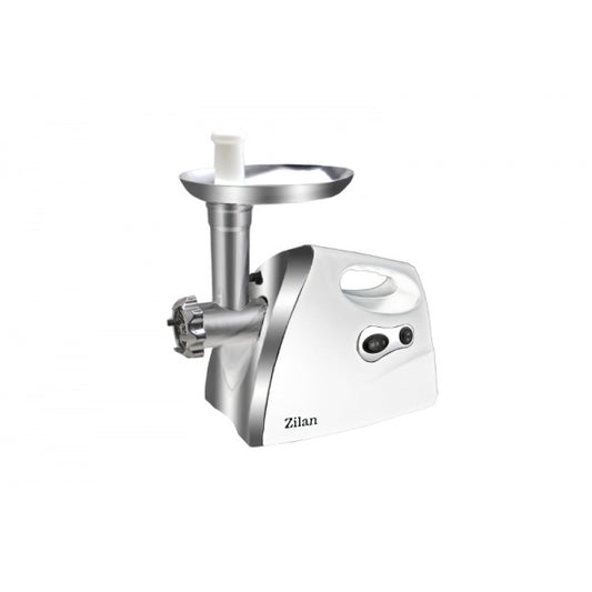 Masina de tocat carne ZILAN Alb 1200W, Tava si panou inox, Accesorii umplut carnati, Functie revers, 1.6kg/min