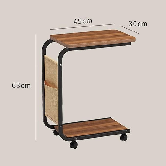 Masuta din otel carbon pentru cafea 4 roti 2 blaturi din lemn buzunar de depozitare