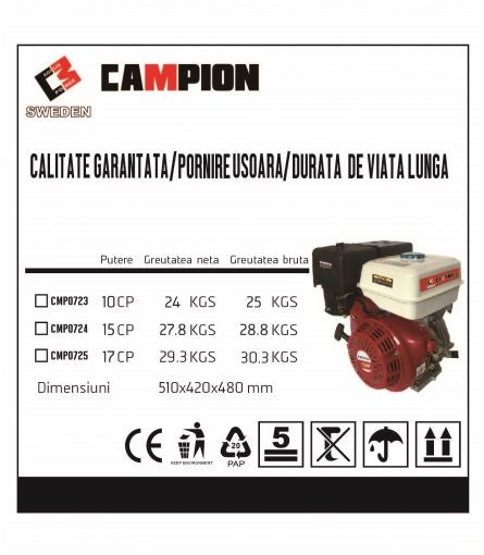 Motor pe benzina 177F 10CP ax 25mm CAMPION