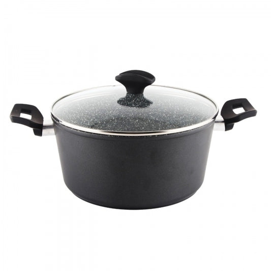 Oala cu capac sticla Zilan Diametru 24 cm, Inaltime 12 cm, Material aluminiu, Interior granit, Compatibil inductie