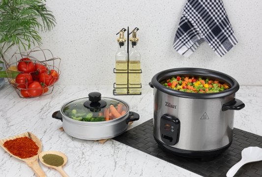 Aparat de gatit Zilan 2 in 1 pentru gatit orez si alimente la abur, capacitate 1.5L, 500W, sistem anti-alunecare
