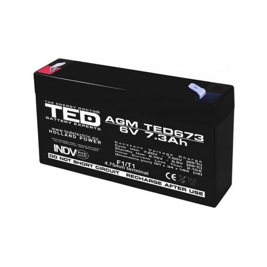 ACUMULATOR 6V 7.3Ah VRLA AGM 151mm x 35mm x h 95mm