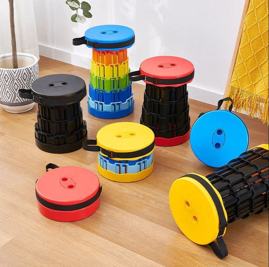 Scaun rotund portabil, retractabil, taburet extensibil cu pliere telescopica pentru camping