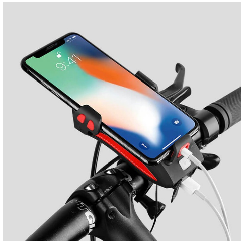 Lanterna pentru bicicleta 4 in 1, Powebank, Suport telefon si Sonerie