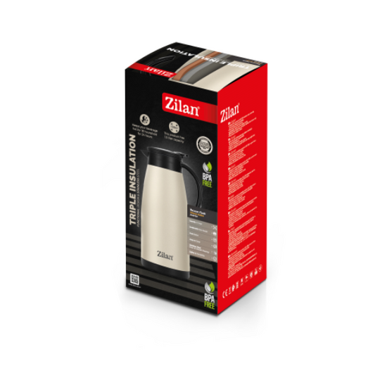Termos Zilan crem din inox, capacitate 1.5L, metine rece pana la 24 ore si cald pana la 18 ore