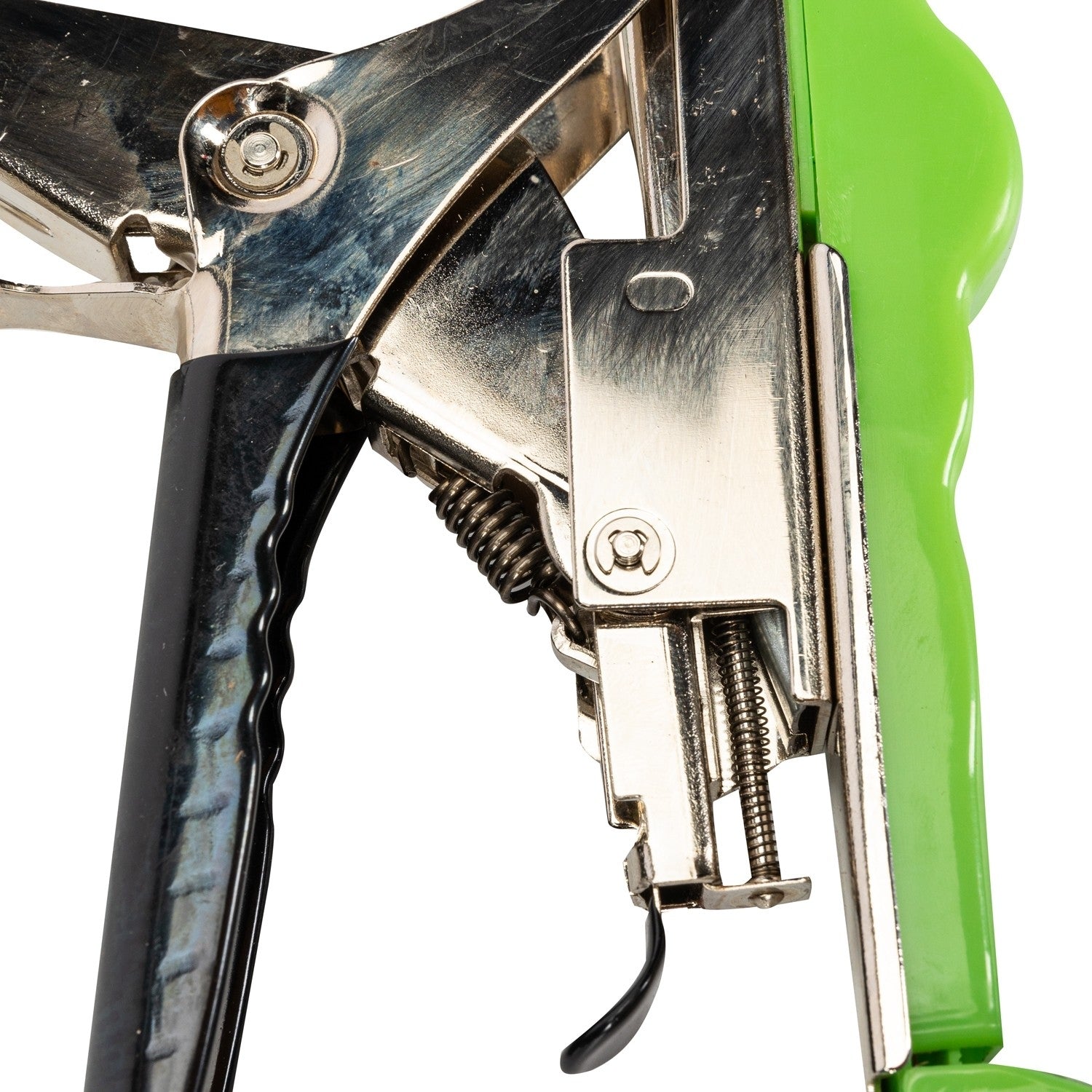 Pasul 2: Impingeti usor banda impotriva tijei plantei si sprijiniti ramura pentru ca banda sa se infasoare in jurul ei, strangeti apoi manerul pana la capat, capsa va prinde banda.