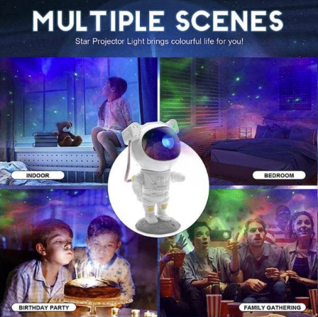 Design si aspect creativ, usor de utilizat: designul aspectului este nou si unic, ecou cu tema cerului instelat si galaxiei, ducandu-va sa explorati vastul cer instelat, capul astronautului, care poate fi rotit la 360° cu atractie magnetica. in plus, baza lunara este detasabila, bratele pot fi miscate, apasati lung butonul „NEBULA”, nebuloasa va disparea, apoi apasati scurt, se va recupera, la fel ca modelul STAR, luminozitatea si viteza toate reglabile, usor de a functiona.
