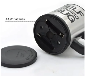 Cana electrica Self Stirring MUG se alimenteaza cu doua baterii de 1,5V, model AAA, neincluse in pachet.