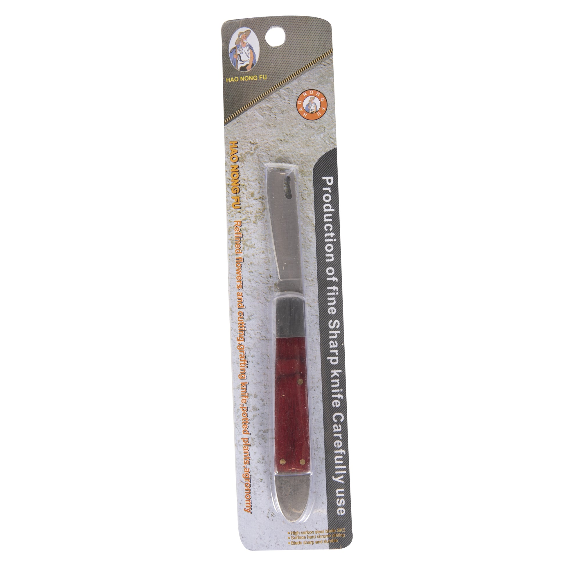 Lama ascutita cu otel inoxidabil de inalta calitate, maner confortabil cu lemn.
