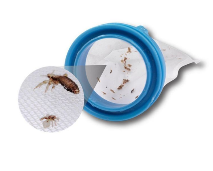Peria V-Comb aspira paduchii si ouale acestora si ii depoziteaza in filtrul special de capturare.