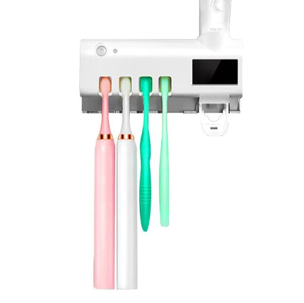 Dozator Pasta De Dinti + Suport Periute Cu Functie de Sterilizare Antibacteriala si Lumina UV ,Model Toby Omoara 99.9% din bacterii si germeni: Suport pentru periute de dinti poate ucide 99.998% din germenii si bacteriile care se aduna pe periuta ta dinti.