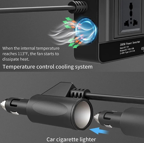 Invertorul auto este echipat cu un ventilator de racire inteligent si silentios, iar disiparea totala a caldurii prelungeste durata acestuia de viata.