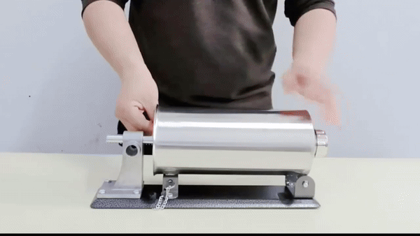 Cilindru inoxidabil permite umplerea rapidă cu o cantitate mare de carne și la final se poate curăța și spăla foarte ușor.