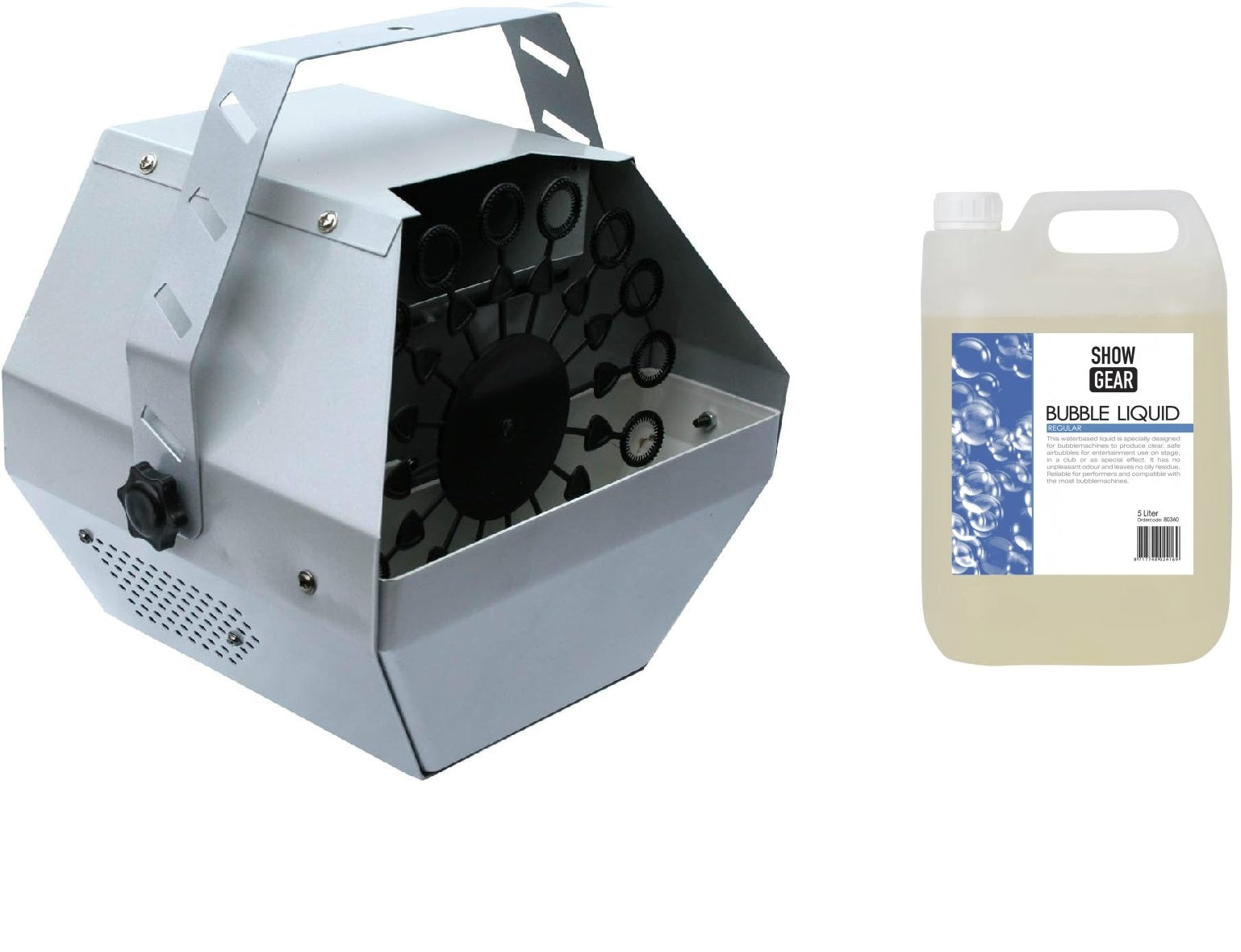 Produce baloane de sapun cu ajutorul unui jet de aer ce strabate fantele alimentate cu solutia speciala; Carcasa metalica rezistenta; Aproximativ 300-500 de baloane/min; Suport metalic pentru fixare; Putere: 60 W; Cosum lichid cca 1000 ml pe ora; Durata de viata baloane: 30-60 sec. (folosita cu solutia speciala); Umple o camera de 30 mp in cateva secunda; Durata mare de viata; Dimensiuni: 21 x 21 x 24 cm; Alimentare: 220V; Greutate 1.730 kg;