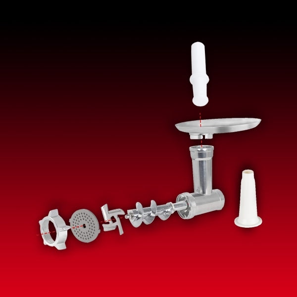 Putere (W): 1800 Capacitate kg/min: 1.6 kg/min Functie revers Accesoriu carnati Tava alimentare Accesoriu impingere Accesoriu kebbe Picioare anti-alunecare Accesoriu carnati 3 Discuri de taiere Accesoriu carnati (mm): 25 Disc tocare (mm): 3, 5, 7 Greutate: 3 kg Material cutit taiere: Metal Material tava: Aluminiu Lungime cablu alimentare (m): 1 Dimensiuni (D x H x W mm): 340 x 200 x 320 1 Viteza.