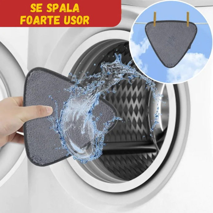Cureti podele,pereti,ferestre,tavane Tehnologie noua de stoarcere Laveta din microfibra superabsorbanta Nu lasa suprafetele ude Extensibil-ajunge oriunde Rotativ 360 Se poate utiliza pe orice suprafata (gresie,lemn,sticla etc.)