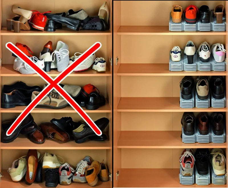 În plus, organizatorul economisește spațiu la jumătate! Puneți un pantof în partea de jos și celălalt în partea de sus.