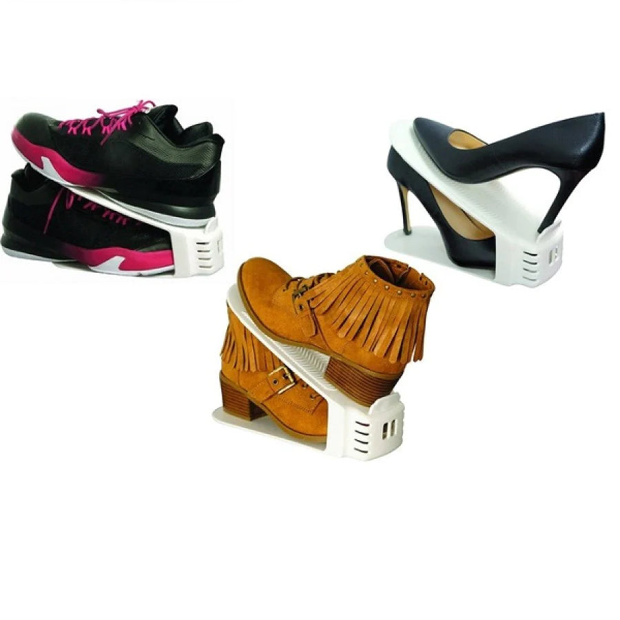 Acest Set 6 bucati organizator pantofi reglabil poate fi utilizat pentru orice tip de incaltaminte si va preveni deformarea si degradarea pantofilor, dar si acele momente deloc placute, in care-i arunci sau ii uiti pe unde nu trebuie.