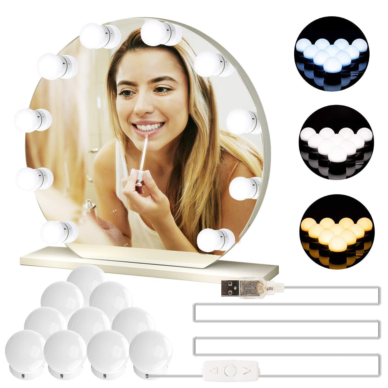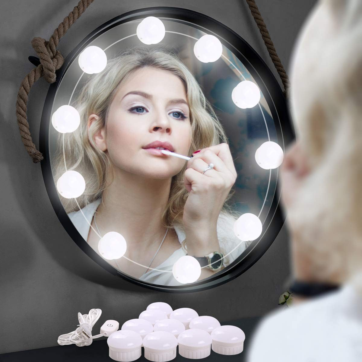 SET 10 BECURI PENTRU OGLINDA AUTOADEZIVE , ALIMENTARE USB, CONTROL INTENSITATE A LUMINII