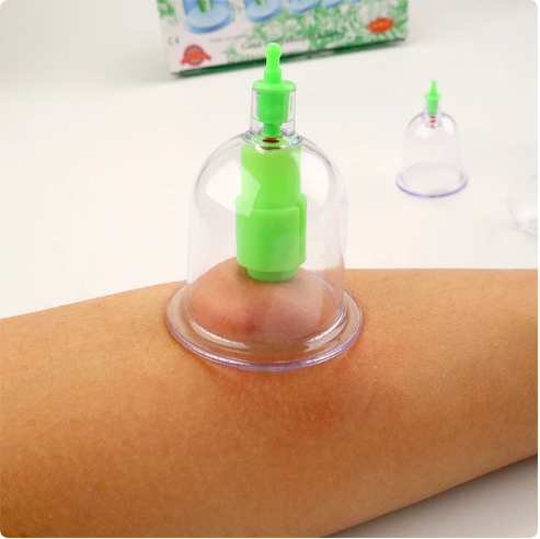 Efectul vindecator se obtine atat prin asezarea ventuzei pe un anumit punct al trupului cat si prin utilizarea uneia sau alteia dintre substantele medicamentoase, astfel: zona punctului se stropeste cu preparatul medicinal, apoi se pune ventuza, in continuare se scoate ventuza si iarasi se aplica preparatul medicinal cu care se frectioneaza pielea.