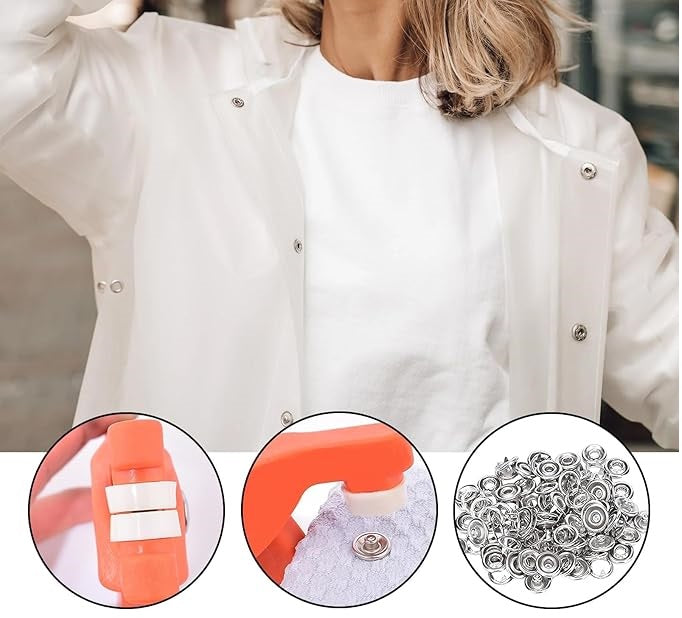 Set Cleste si 200 Bucati Capse Metalice 9.5 mm Premium Pentru Cusut, Capse Argintii