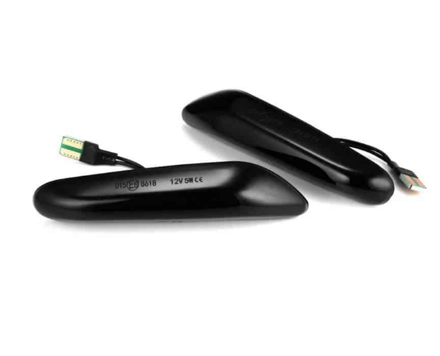 Set 2 bucati lampi semnalizari dinamice BMW (stanga / dreapta) Dimensiuni: 113mm x 25mm (lungime x inaltime) Tip led: 3528 SMD Tip soclu: T10 (w5w) Nr leduri: 18 Voltaj: 12V Putere: 5W Tip semnalizare: dinamic / secvential Material: plastic Culoare: negru fumuriu Culoare lumina: 3000k (galben) Plug & play, montaj simplu, se inlocuiesc cele vechi Protectie umezeala: IP67 Durata de viata: ~ 50000 ore Nu dau erori de bec ars in bord