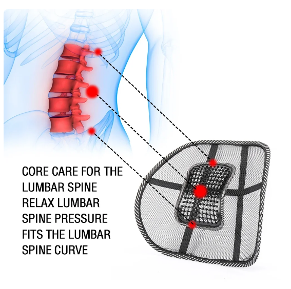 Pozitia incorecta la birou sau pe scaunul auto provoaca mari probleme ale coloanei vertebrale, si prin urmare dureri de spate. In plus, atunci cand stam multe ore nemiscati pe un scaun, transpiram in zona lombara, iar acesta este un alt risc al statului indelungat pe scaun. Suportul de scaun este confectionat din plasa, care impiedica astfel corpul sa transpire, pentru ca spatele nu mai sta lipit de scaun.