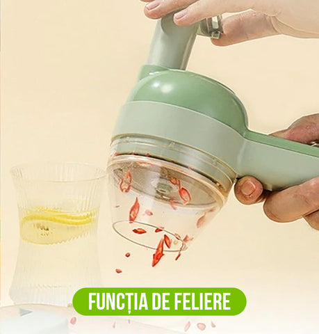 Cu acest maruntitor electric de legume 4-in-1, portabil si fara fir pregatesti cu usurinta o varietate de ingrediente pentru gatit, economisind timp si efort.