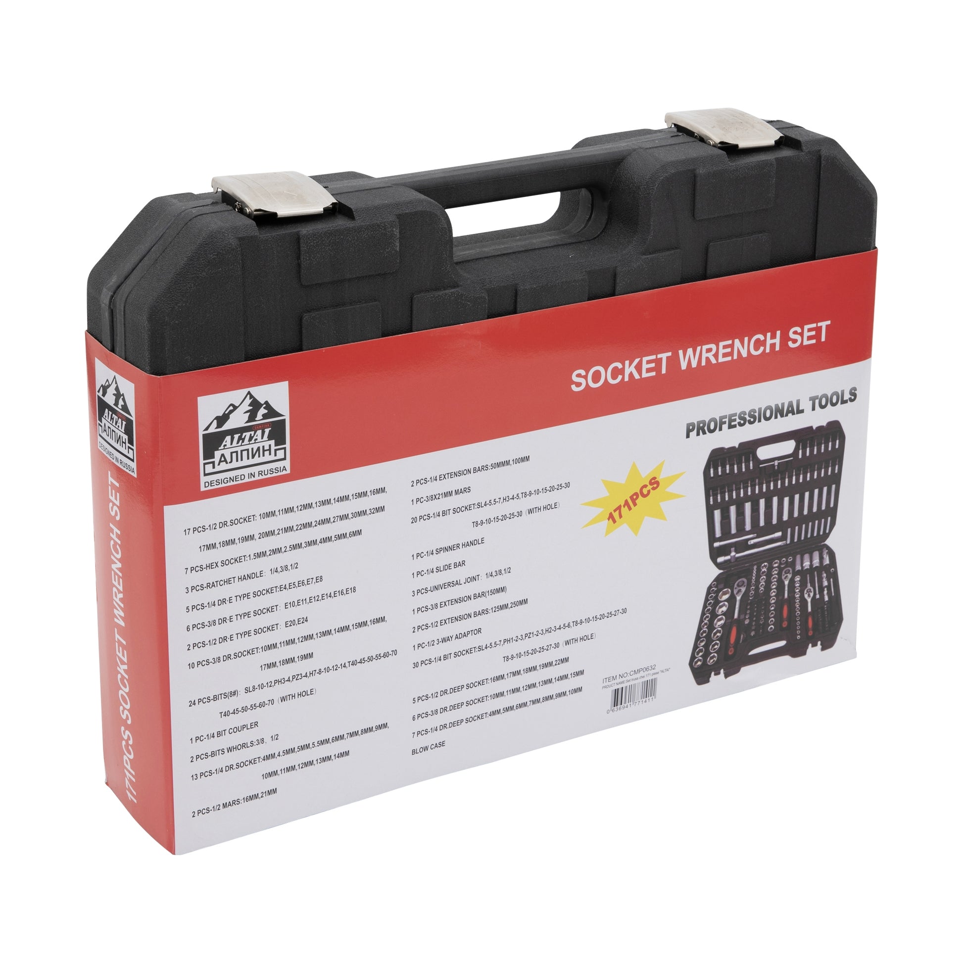 40 chei de prindere scurte1/4 “”: 4 / 4.5 / 5 / 5.5 / 6/7/8/9/10/11/12/13/14 mm3/8 “”: 10/11/12/13/14/15/16/17/18 / 19mm1/2 “” 10/11/12/13/14/15/16/17/18/19/20/21/22/24/27/30/32 mmChei mama cu 18 pense lungi:1/4 “”: 4/5/6/7/8/9 / 10mm3/8 “”: 10/11/12/13/14 / 15mm1/2 “”: 16/17/18/19 / 22mm13 profile electronice PCS-Torx:1/4 “: E4 / E5 / E6 / E7 / E83/8 “”: E10 / E11 / E12 / E14 / E16 / E181/2 “: E20 / E24 5 Extensii PCS: 1/4” “: 2” “/ 4” “3/8” “: 5” “/1x T-Maner: 1/4 “”3 imbinari PCS-Universal: 1/4 “” / 3/8 “” / 1/2 “”1 maner PCB-surubelnita: 1/4 “”3 clichet reversibil PCS: 1/4 “” / 3/8 “” / 1/2 “”3 prize pentru bujii PCS:3/8 “”: 18mm1/2 “: 16 / 21mm7 taste PCS-Allen:1 / 1,5 / 2 / 2,5 / 3/4 / 5mm30 bucati de perforare PCS-1/4:3x Slotted: 4 / 5.5 / 7mm3x Cap Cross: PH1 / PH2 / PH33x Pozitie transversala: PZ1 / PZ2 / PZ35x priza hexagonala: 2/3/4/5 / 6mm8x Torx: T8 / T9 / T10 / T15 / T20 / T25 / T27 / T308x Torx cu gaurire centrala: TH8 / TH9 / TH10 / TH15 / TH20 / TH25 / TH27 / TH3020 biti PCS-25 mm cu suport pentru biti de gaurit3x Torx: T5 / T6 / T79x Torx cu foraj central: T7 / T10 / T15 / T20 / T25 / T27 / T30 / T40 / T455x Ribe: M5 / M6 / M7 / M8 / M93x: Priza hexagonala: M5 / M6 / M824 biti PCS-30mm:3x Slotted: 8/10 / 12mm2x Cap de Cruce: PH3 / PH42x Pozitie transversala: PZ3 / PZ46x Torx: T40 / T45 / T50 / T55 / T60 / T706x Torx cu foraj central: T40 / T45 / T50 / T55 / T60 / T705x prize hexagonale: 7/8/10/12 / 14mm