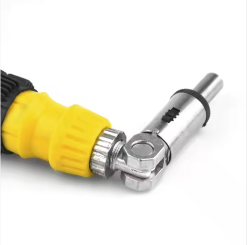 Setul de surubelnite include o surubelnita cu cap mobil si clicket, un prelungitor si o multitudine de capete tip surubelnita si tip tubulara.